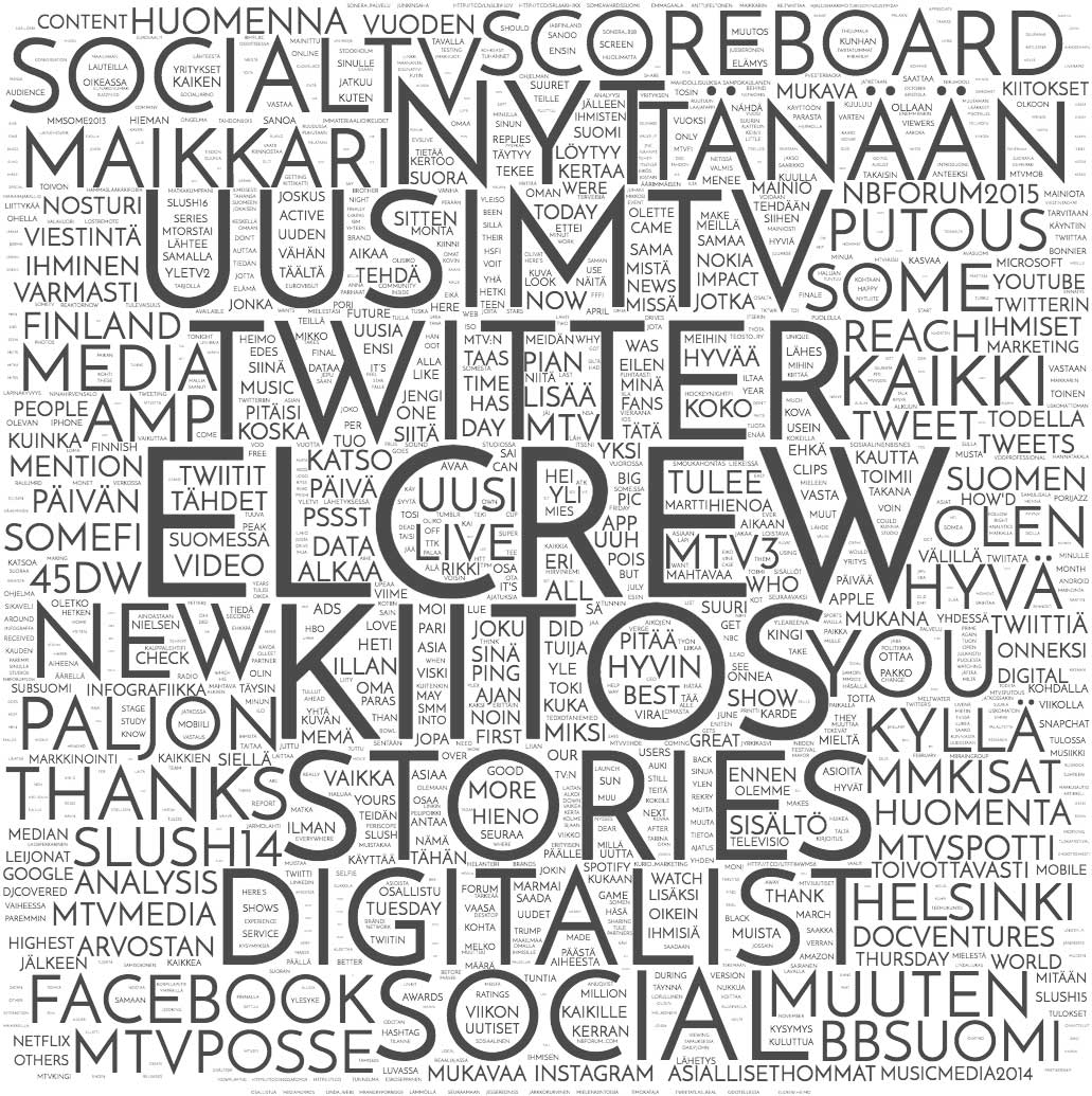 Martti, I can't thank you enough for the work that you do every year for the Slush hashtag. The previous year statistics helped me a lot to prepare for this year and this year statistics are going to deliver the same benefit for next year. Best regards, Elina (Slush Twitter Lead)